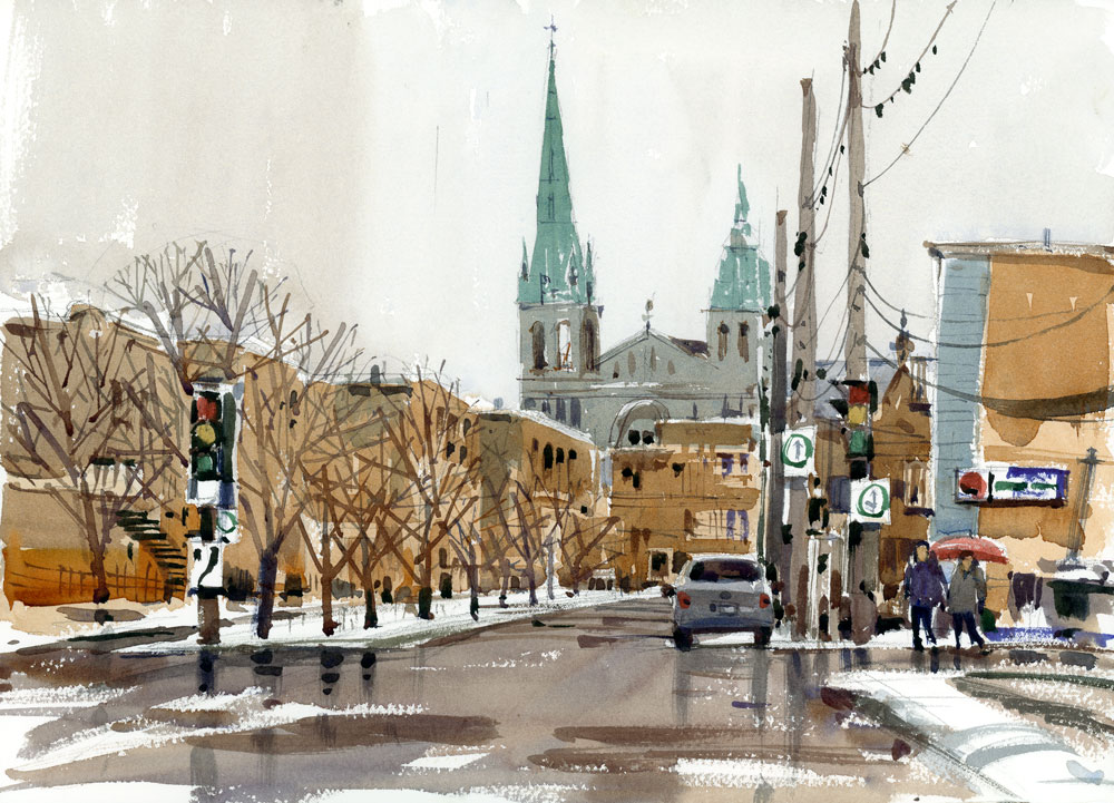Shari Blaukopf is a workshop instructor, watercolour painter and sketch blogger. Her paintings are inspired by the landscapes and cityscapes of Montreal, where she grew up, as well as by the places she travels to. She paints and sketches in all seasons, but her favourite season is winter, when she often sketches from her makeshift car studio.