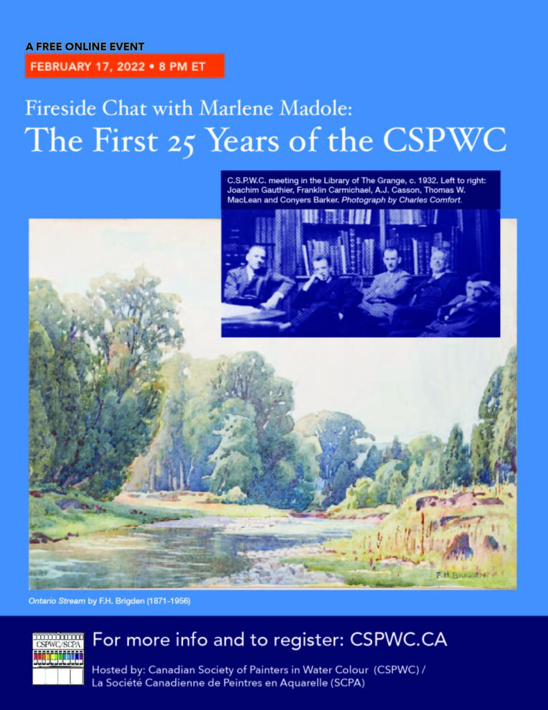 With our growing membership, it’s time for us to revisit our roots and find out how our society came to be. We are pleased to host 1st Vice President, Past-President, Elected Member and resident expert Marlene Madole who will guide us through a deep dive into the past, illuminating the first 25 years of the CSPWC. Tales will include not only the forging of our path to create recognition and community for the fascinating medium of watercolour, but will also include spicy, sordid tales (even fisticuffs). Also featured in the tales of our past will be guest appearances by bonafide Canadian luminaries Emily Carr and David Milne.