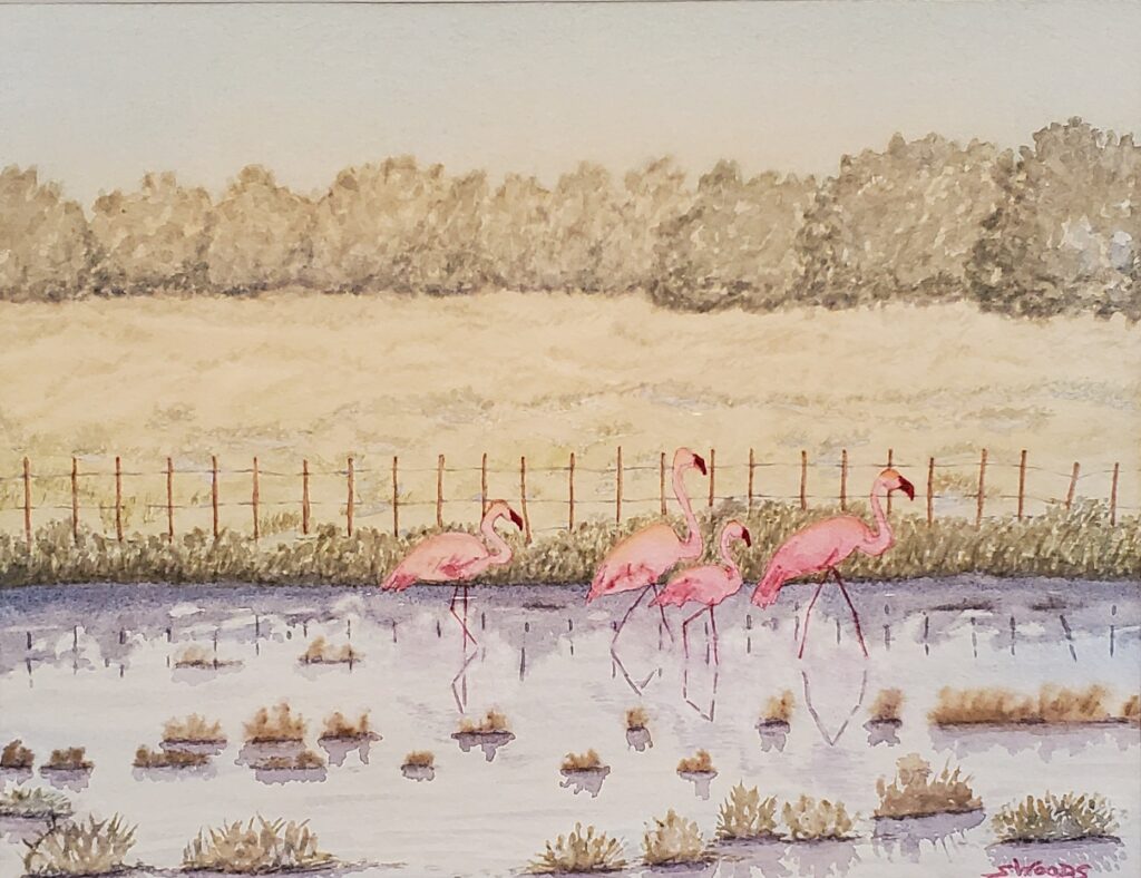 Sandra Woods began painting in 2021 to help with her chronic pain and cognitive impairment from a rare disease. She is thrilled to have her watercolour “Promenade en Camargue, Provence” in the “Entre Nous 2002” exhibition at the historic Trestler House in Montréal; January 20 to March 13, 2022: